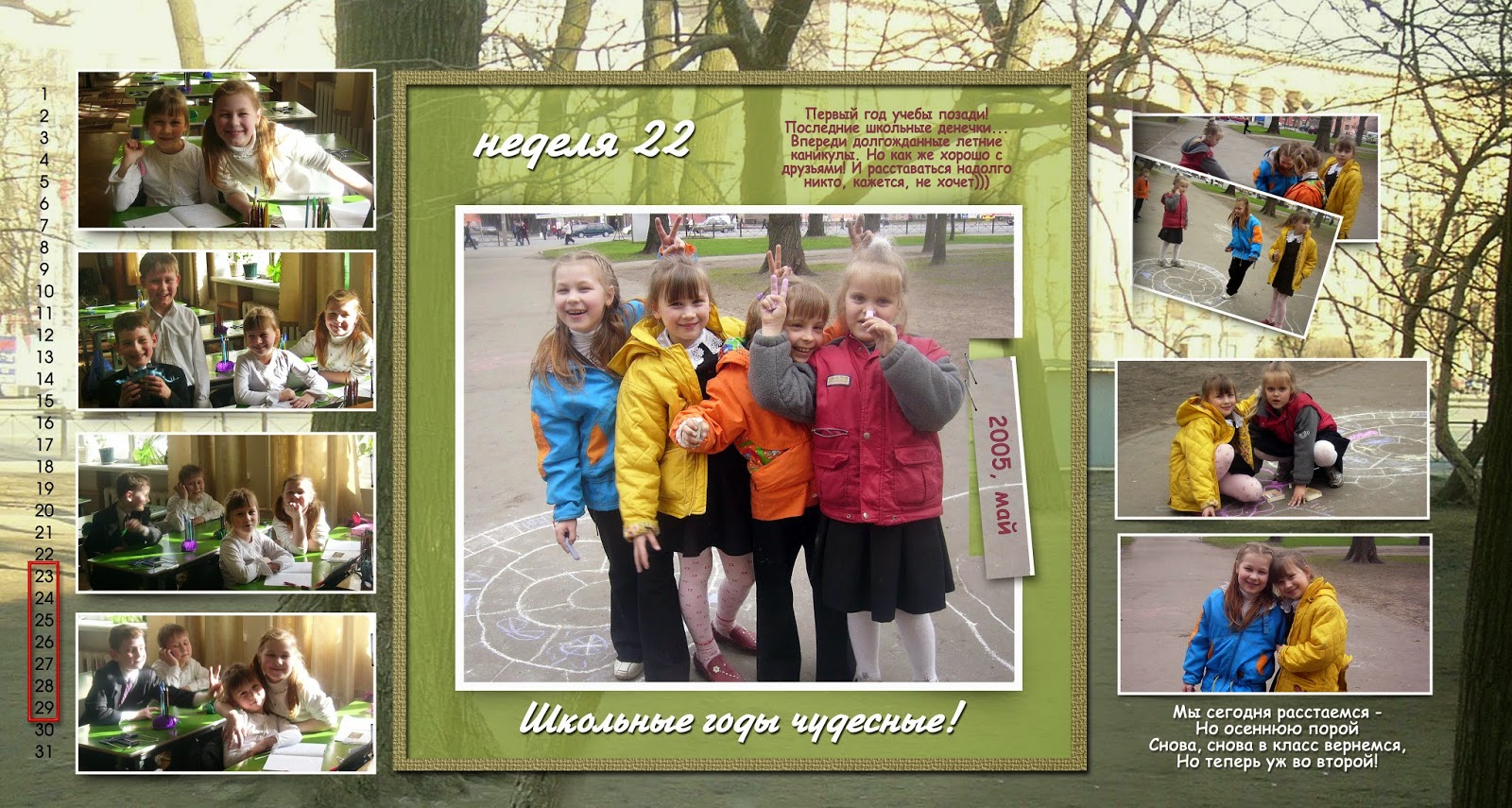 25 Лидия Селиверстова. Понравились развороты, как по мне очень хорошо подобраны фотографии и фон. И даже элементов никаких не нужно тут - сам шаблон Светланы очень подходит к такому оформлению. Браво!